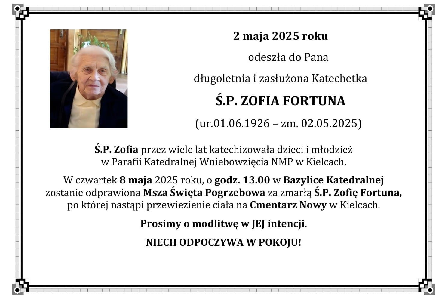 Strona główna » Pogrzeb Katechetki – Ś.P. + Zofia Fortuna